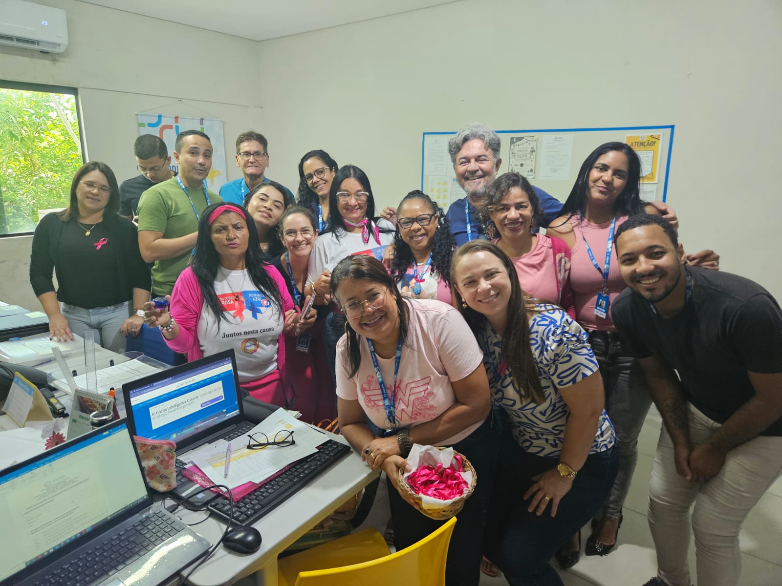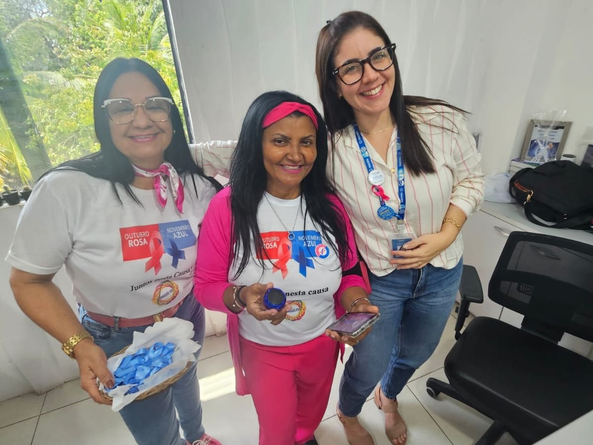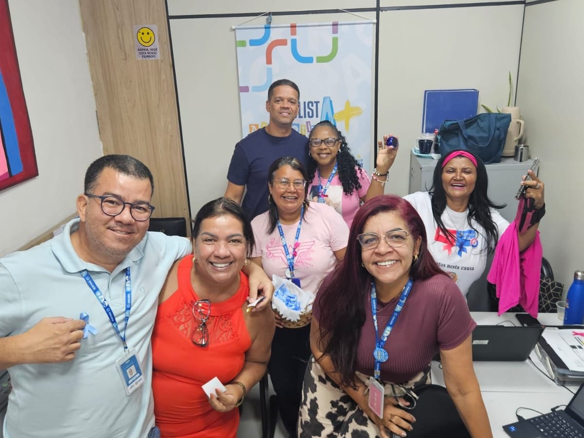 Durante a iniciativa, foram distribuídos broches temáticos das campanhas, simbolizando o engajamento da Secretaria na conscientização sobre a prevenção ao câncer de mama e ao câncer de próstata, além de reforçar a importância do autocuidado, da saúde mental e da solidariedade entre os colegas de trabalho.