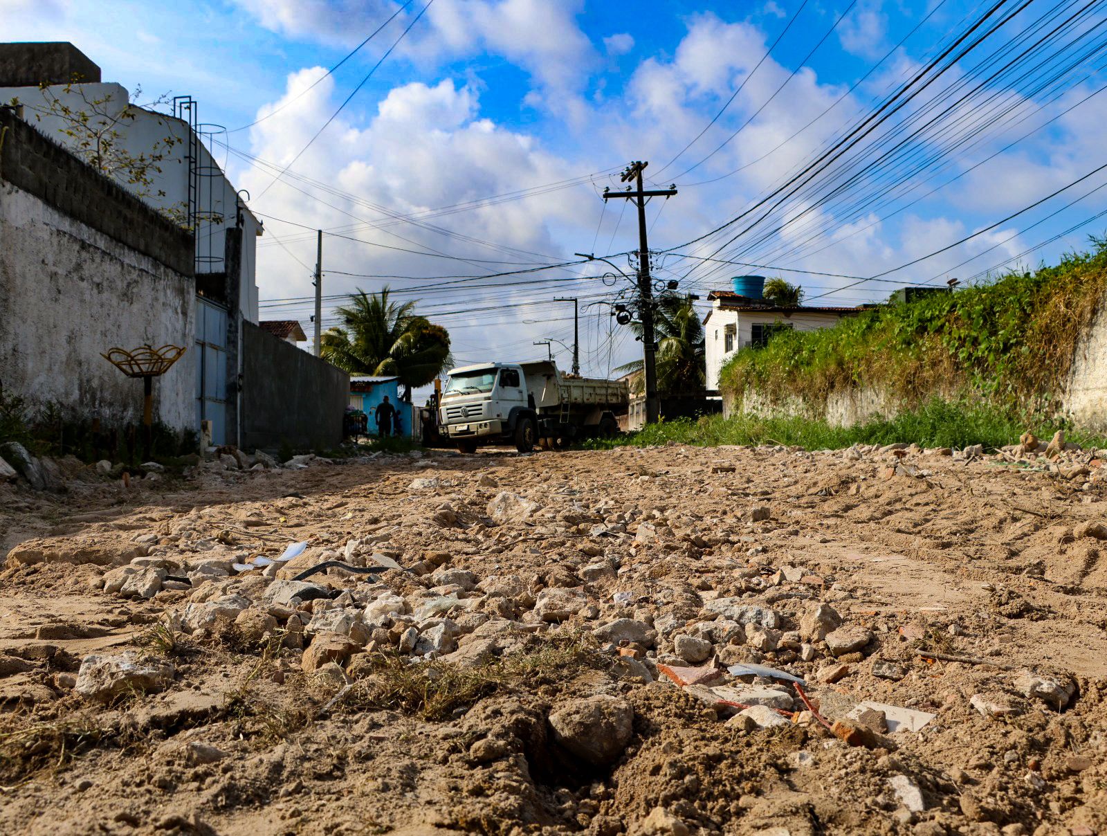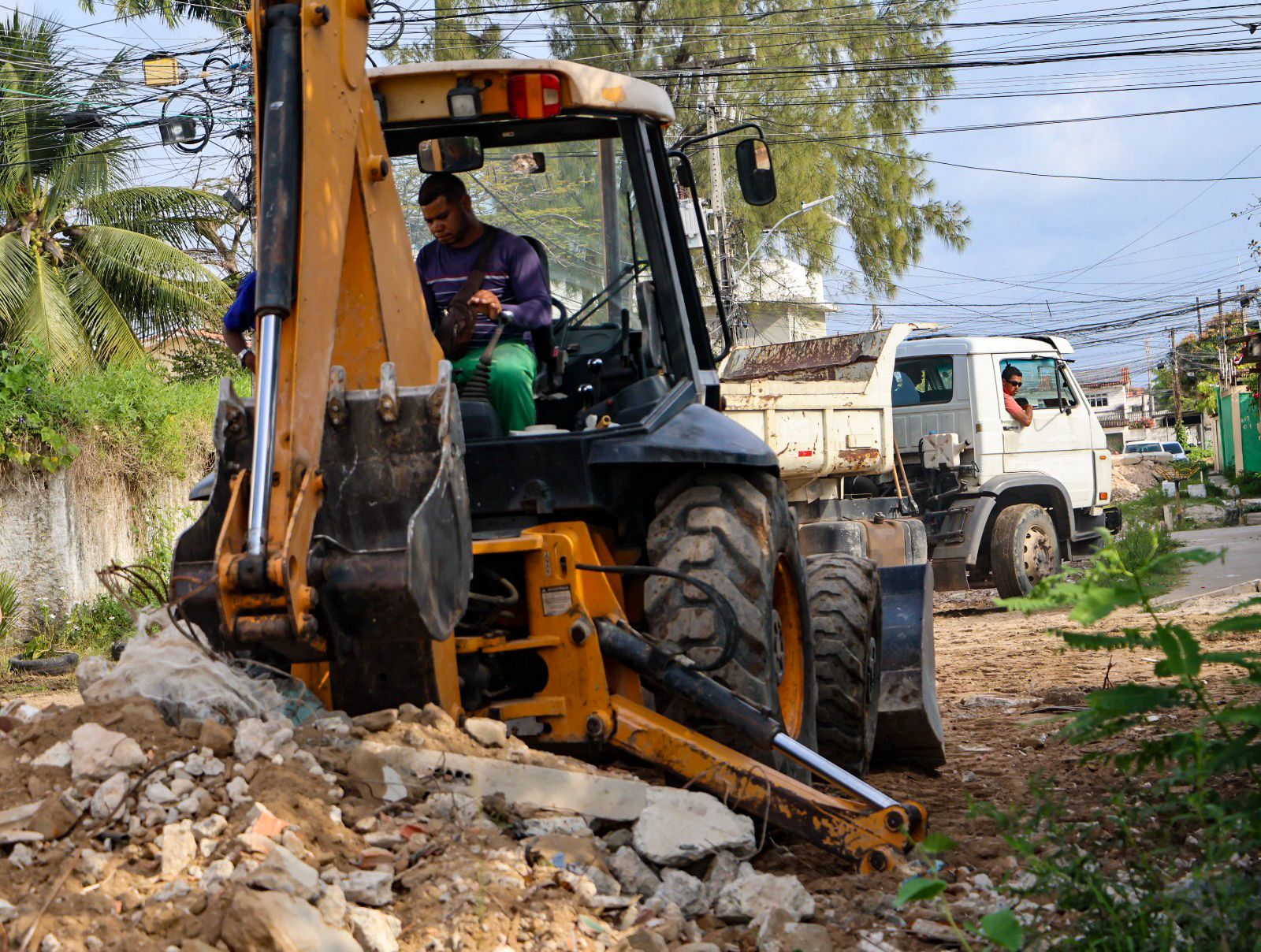 “Infelizmente, foi depositado nas ruas aqui de Pau Amarelo um grande volume de metralhas derivadas de um prédio que está sendo demolido no Conjunto Beira-Mar, que não foi autorizado pela Prefeitura. Mesmo assim, o prefeito viu a necessidade de mandar a máquina. Já faz 15 dias que ela está aqui em Pau Amarelo recolhendo todo esse entulho, que estava dificultando o deslocamento da população”, explicou.