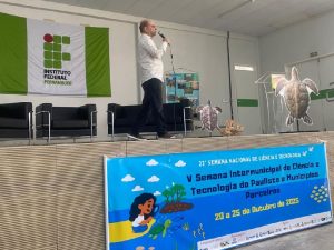 Nesta segunda-feira (21), teve início a V Semana Intermunicipal de Ciência e Tecnologia do Paulista e Municípios Parceiros, realizada no IFPE Campus Paulista. O evento, que já faz parte do calendário científico e educacional da região, traz nesta edição o Ciclo de Palestras “Planeta Água: a cultura oceânica para enfrentar as mudanças climáticas no meu território” como tema central das atividades.