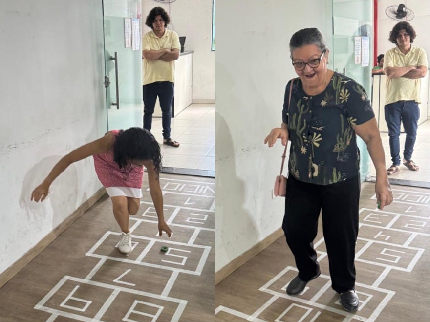 Durante a programação, os professores participaram de dinâmicas que relembraram jogos infantis e estimularam reflexões sobre como essas práticas podem ser utilizadas como ferramentas pedagógicas nas bibliotecas escolares.