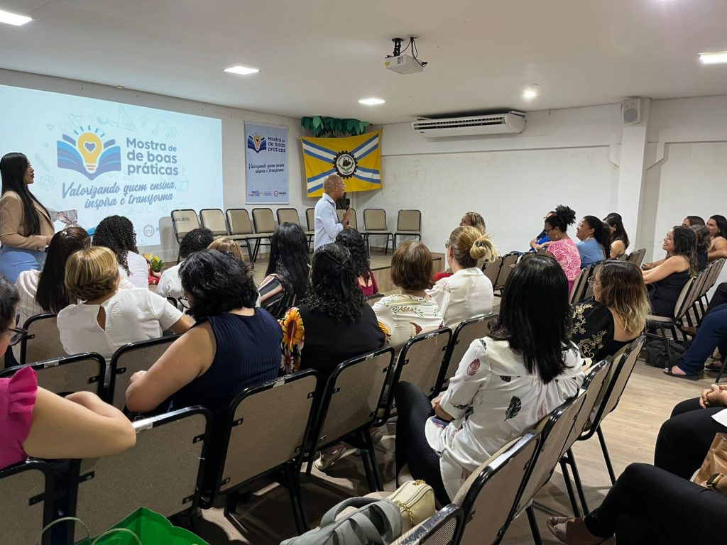 A abertura do evento contou com uma fala acolhedora da equipe pedagógica da Secretaria de Educação, que destacou o empenho dos docentes e o caráter inspirador das experiências apresentadas.