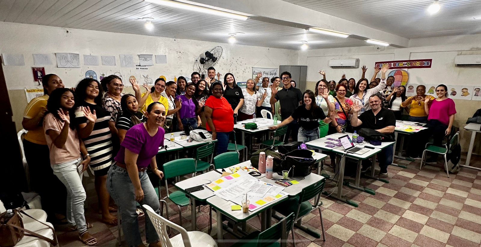 Já no terceiro e último dia, 10 de setembro, as atividades foram realizadas no Grupo Escolar Frei Guido, em Mirueira, escola piloto para a implantação da proposta. Sob a condução dos representantes do Instituto Escolas Criativas, Cléssio e Thaís, os professores participaram de uma formação voltada à integração de metodologias ativas, recursos tecnológicos e experiências práticas de aprendizagem, todas alinhadas ao planejamento pedagógico.