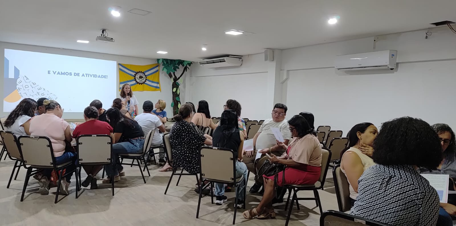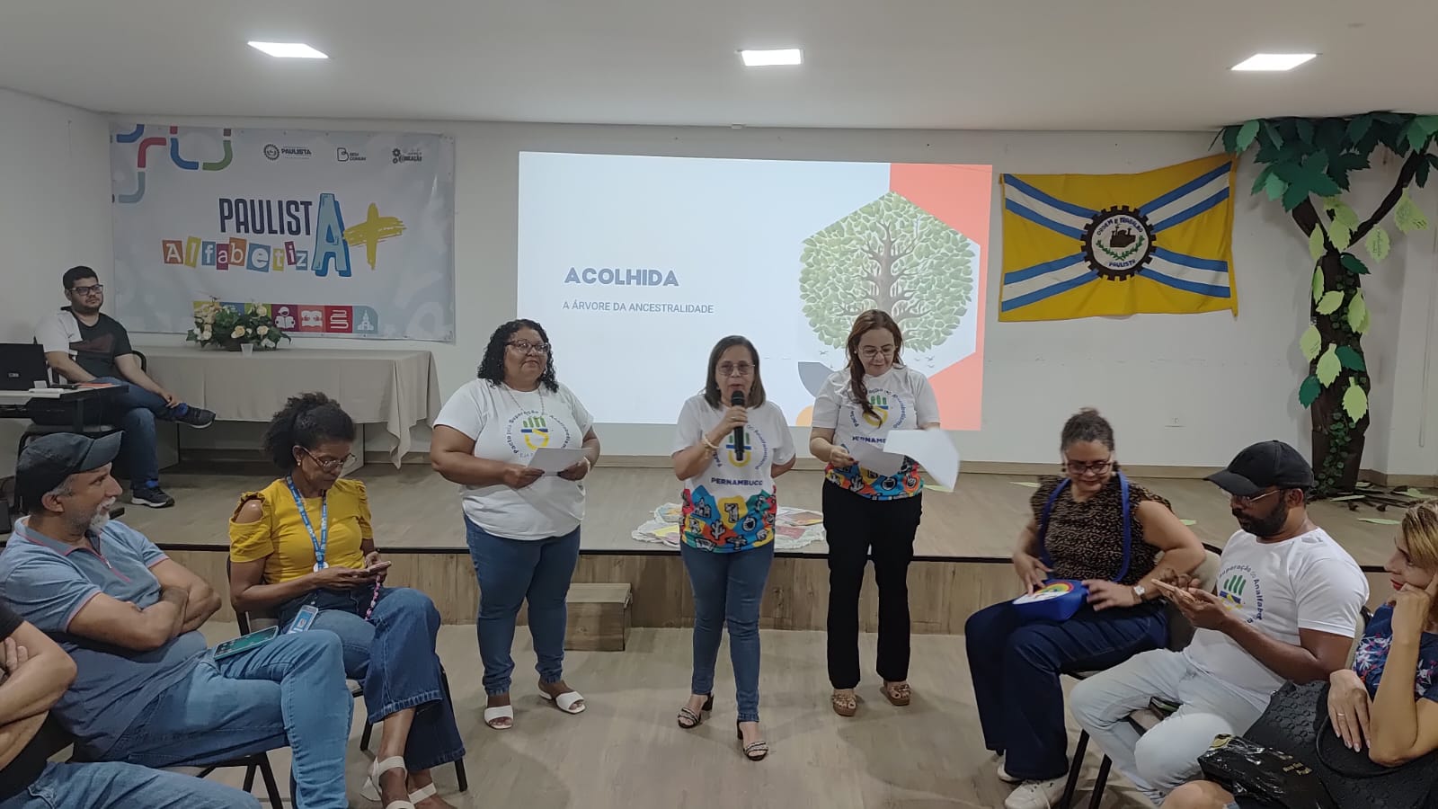 A atividade, intitulada “Círculo de Cultura Presencial, Regional Metropolitana Norte”, contou com a temática: Ancestralidade, Identidade na Alfabetização e Letramento da EJA, com dinâmicas de sensibilização, como a proposta da “Árvore da Ancestralidade”. Na ocasião, os participantes foram incentivados a reconhecerem a ancestralidade como parte da identidade de cada sujeito, valorizando as suas raízes culturais, familiares e comunitárias. O encontro, realizado no auditório da SEPA, reuniu educadores da Rede Municipal com o objetivo de fortalecer práticas pedagógicas voltadas à alfabetização e à superação do analfabetismo no município.