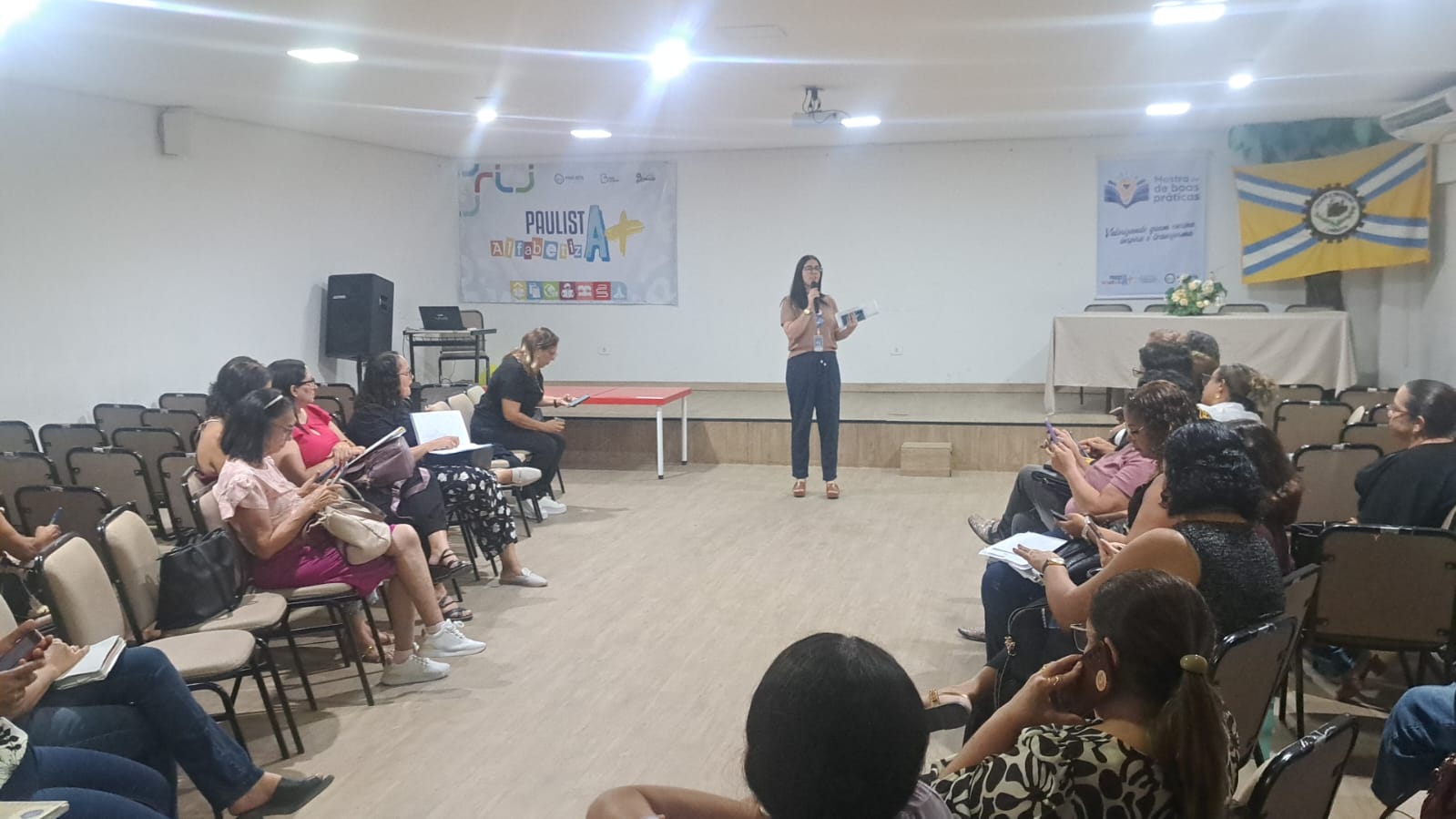 Na manhã desta segunda-feira (20), a Secretaria Municipal de Educação e Educação Paulista (SEEPA), promoveu uma formação voltada para coordenadores e apoios pedagógicos das escolas da Rede Municipal. O encontro organizado pela Coordenação de Supervisão Escolar, em parceria com as Gerências de Gestão Escolar, Apoio Discente e Articulação Comunitária, além da Gerência Pedagógica, aconteceu no auditório da Secretaria, no Centro.