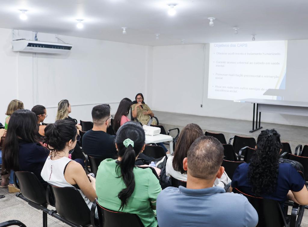 Durante a palestra, a psiquiatra Eliete Machado reforçou a importância do papel do Centro de Atenção Psicossocial (CAPS) como um serviço de caráter transitório no cuidado em saúde mental. “Nenhum paciente é do CAPS, ele está no CAPS. A ideia é que melhorem, recebam alta e possam ser acompanhados em outros equipamentos de saúde, como ambulatórios, além de espaços voltados à reinserção social”, explicou.