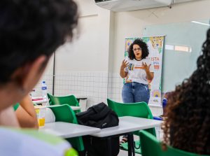 Ranielle Vital também é moradora de Paulista e explicou a relação entre cultura e educação ambiental. “A gente traz os povos originários, a cultura dos tambores, do audiovisual, dos desenhos. Tudo isso tem um papel muito forte na formação que recebemos desde cedo quando falamos de educação socioambiental”, afirmou.